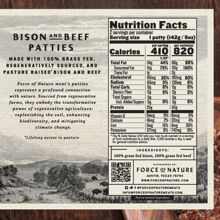 Our Grass-fed Bison patties have a rich yet mild wild game flavor. 100% grass-fed and grass-finished bison with a hint of beef make for a juicy and delicious burger. Pre-made patties make for all the flavor with none of the work—say hello to a staple that’s as wild as it is approachable.