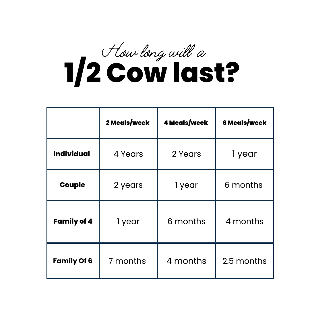 A Half Cow takes about6–8 cubic feetof freezer space. That’s roughly the size of a small chest freezer, or half of a standard upright freezer.
